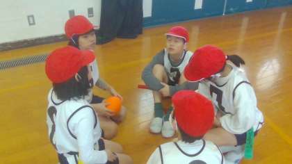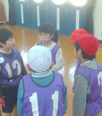 今日は、タグラグビー最後の時間でした。作戦会議にも熱が入ります。