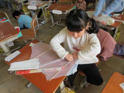 ふゆとともだちの学習で、凧をつくりました。