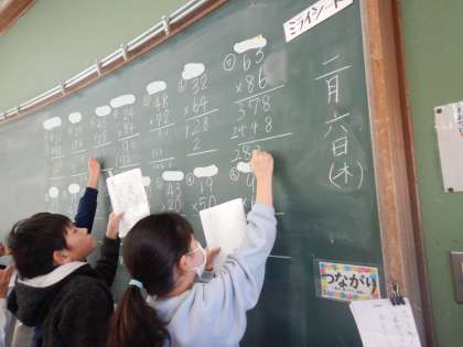 2けたをかけるかけ算の筆算の仕方を考えました。