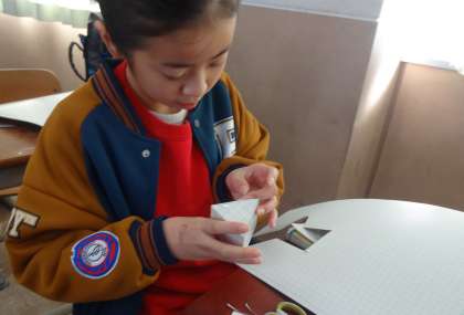 展開図を書いて、組み立てて角柱や円柱になるかを確かめました。
