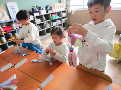 韓国の遊び「チェギ」をみんなで作り楽しみました。