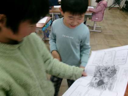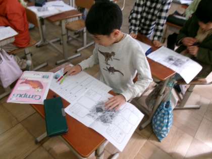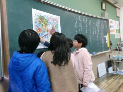 たから島の地図から想像を広げて物語を書く学習です。冒険物語は、やっぱりドキドキわくわくさせたいよね、と話し合い、どんな登場人物がどんなものに出会ってどんな事件どうやって解決するか・・・設定を考え中です。
