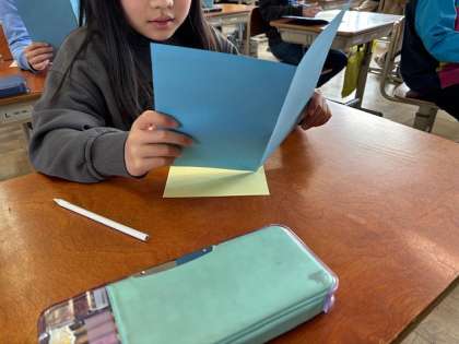 国語科では、「すてきなところを見つけよう」の学習を行いました。友達の良いところを見つけて、どんなすてきなところや具体的なエピソードを手紙に書くか考えました。友達が喜んでくれるように気持ちを込め、相手が好きそうな色の画用紙を選んだり、丁寧な字で書いたり、色塗りをしたりしました。手紙が誰から届くか内緒にしていたので、「〇〇さんが書いてくれたんや!」「めちゃくちゃ嬉しいこと書いてある!」と喜んでいる姿や、何度も手紙を読み返して微笑んでいる姿が見られ、見ているこちらも温かい気持ちになりました。最後は、手紙をくれた相手にお返事を書いて渡しました。