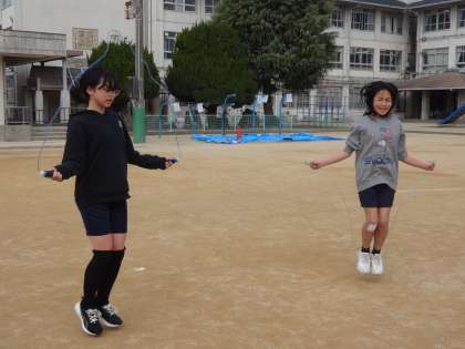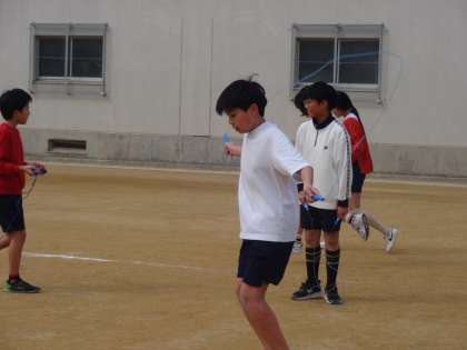 最後の体育は「ペース走、縄跳び」を行いました。