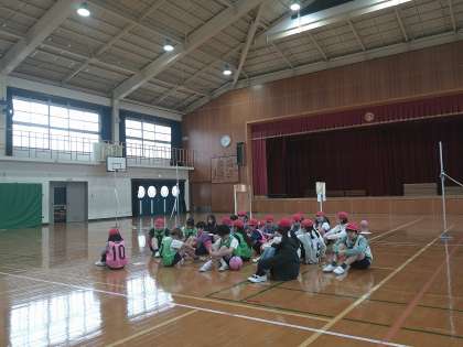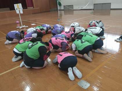 体育科の授業中でしたが、すばやく中央に集まって、頭を守る姿勢をとれました。