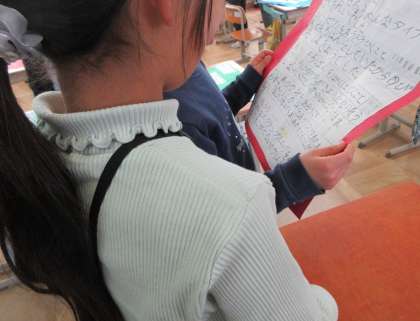 生活科「広がれわたし」の学習では、これまでの自分の成長や思い出を振り返り、今の自分になるまでの記録や自分の良いところをまとめました。友達に自分の良いところを書いてもらったり、自分自身でこれまでに出来るようになったことや嬉しかったことを思い出したりしました。一人一人が自分について一生懸命まとめた画用紙を、最後はみんなで見合いっこしました。本日持ち帰っていますので、是非ご覧ください。