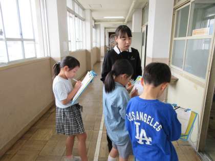 休み時間にインタビューに行きますが、グループで行く日を相談してしっかり丁寧にインタビューができています。