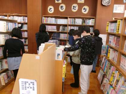 図書館司書の先生から利用指導の話を聞いた後は、お待ちかねの貸し出しタイム。