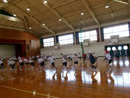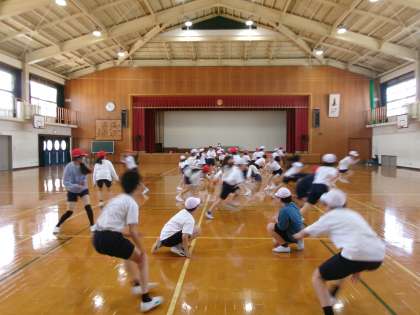 体育の学習では、心と体をほぐす「体ほぐしの運動」に取り組んでいます。