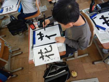 点画の筆使いに気を付けて、注意するポイントを考えてから清書を書きました。