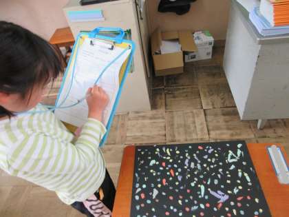 教室の後ろに鮮やかな作品を飾るのが楽しみです。