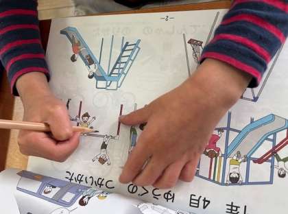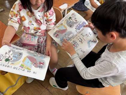 今週は初めての避難訓練があり、避難の仕方や地震が起こった場合の行動の仕方について学習をしました。今日は、振り返りをしながら安全ノートで正しい行動と危険な行動について学習しました。子どもたちは、正しいかどうかだけでなく、なぜ危険なのかを理解して説明することができていました。自分の命を自分で守ることが出来るよう、これからも避難訓練や安全学習を真剣に行い、地震以外についても正しい知識をつけてほしいと思います。