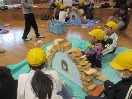 午後の活動はまず雨プログラム『アーチをつくろう』です