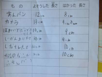 思ったより近い長さを予想している子も多かったです。