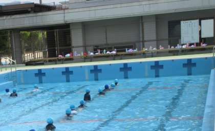 水遊びでは、体のいろんな部分を水につけて慣れたあと、追いかけっこをしたり、ワニ歩きをしたりして、水の中での移動を楽しみました。