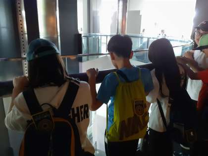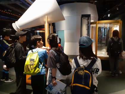 グループでの館内見学のようすです。見る物全てに興味津々!