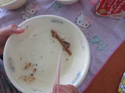 初めて骨を取った時よりも、上手に骨を取って食べることができるようになっていました。