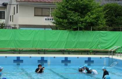 まだ、肩まで浸かることで精いっぱいの様子も見られますが、楽しみながら水遊びができればと思います。