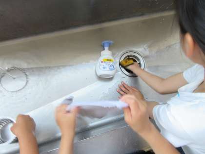 今回は手洗い場掃除の様子です。細かいところまで丁寧に磨いてくれていました。