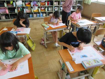 初めに挿絵を見て、なにをしていそうか、どんなお話かを想像しました。