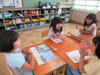 鳴き声の長さや音の高さを変えて鳴きまねをし、グループで一曲を作りました。