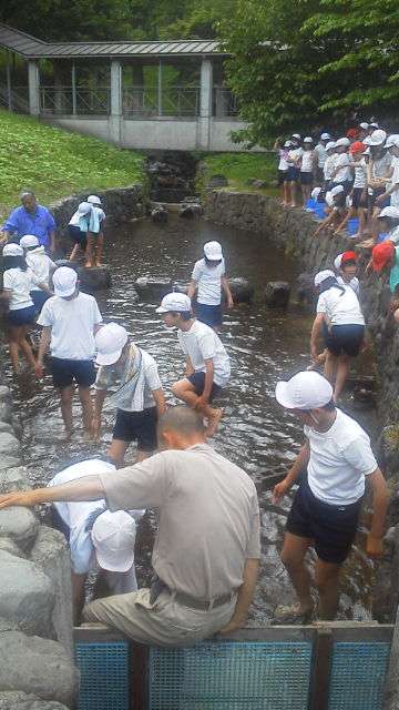 最初はためらっていた子どもたちも一人が捕まえると,次々川の中へ入って行きます。