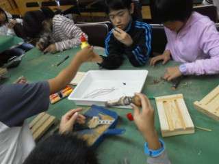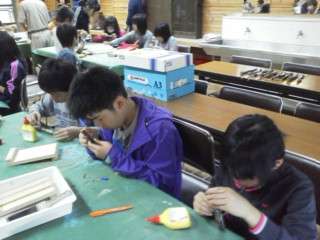 今日の活動のテーマは,「感謝」です。木をさわっているとそのぬくもりが伝わってきます。思い出の作品作りです。