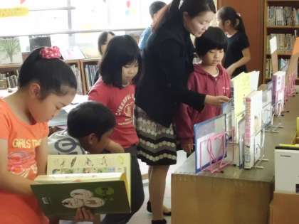 図書委員がコールすると,子どもたちは,あちこちの書架から本を見つけてきました。