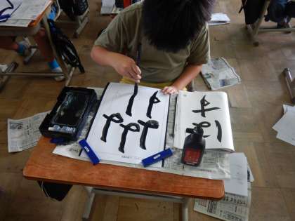 筆を使って、力加減やリズムよく動かすことを意識して、書くことができました。