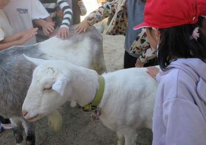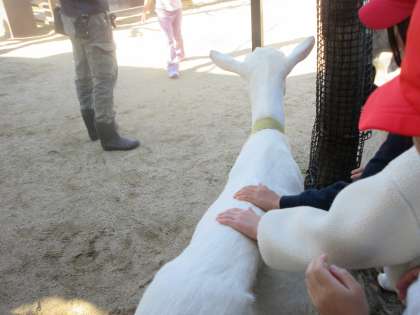 優しく背中をなでながら、ヤギととても仲良くなることができました。