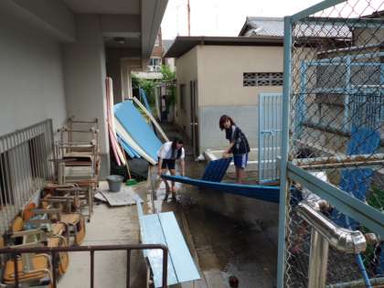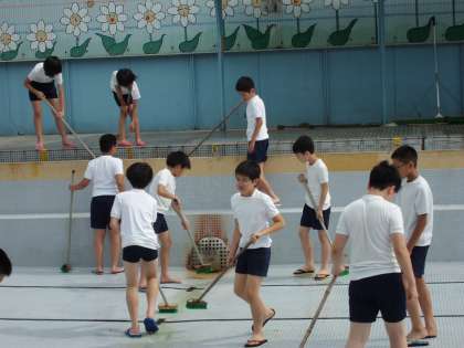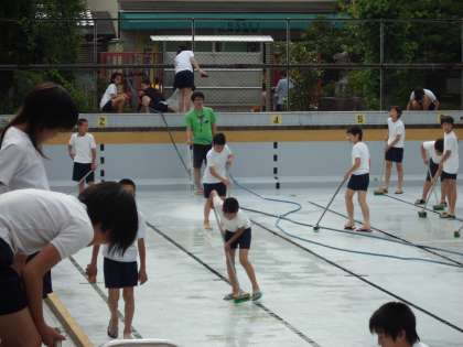 6年生はプールの中だけでなく,プールサイドや更衣室も掃除しました。