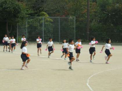 1年生は団体競技でする,ダンスと玉入れの練習をしています。