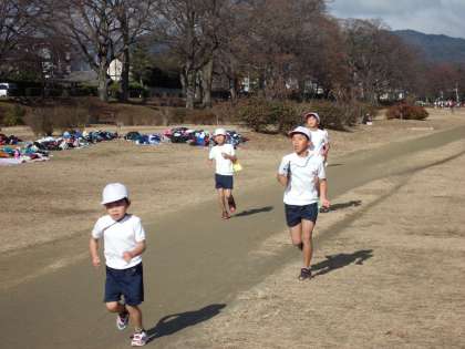 1番よく走った子どもは,6年生のN君とK君でした。13800メートル(13.8キロメートル)です。女子でも6年生のUさんが12200メートル(12.2キロメートル)を走りました。スピードをほとんど落とさず最後まで走りきる姿には,本当に感心しました。
