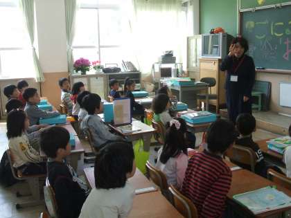 入学式の次の日,1年生の子どもたちは教室ではじめての授業にのぞみました。
