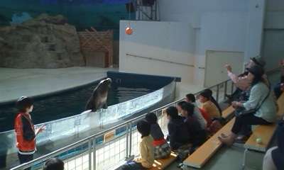 アシカショーも楽しんで,これから水族館をあとに二見へ出発します。みんな元気です。