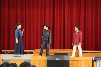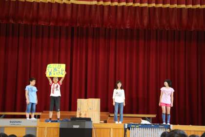 観客席のみんなには,どんな「宝物」なのかを教えてくれました。それは,「友情」「協力」「自然」「生命」「挑戦」「感謝」です。山の家での活動を通してこそ,得られるものなのです。