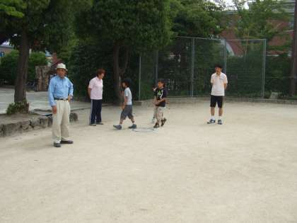 6月30日(日)室町体育振興会主催「室町区民スポーツのつどい」が開催されました。生涯スポーツの楽しさを体験し健康増進をはかることをねらいとして,毎年この時期に行われています。この日は,曇天ではありましたが風が爽やかで,スポーツをするには良いコンディションでした。