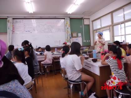 子どもたちが呼びに来てくれたので,早速,学校長と教頭と教務主任,それに3名の担任が家庭科室に行って,一緒に会食しました。さっぱりしていて,暑い夏でもモリモリ食べられます。子どもたちもお代わりしていました。野菜の苦手な子どももいますが,自分で作ったおかずは特別なのか,残さずに食べていました。