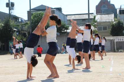 5年生は,初めての組体操に取り組みました。今まで憧れていた種目に挑戦するため,熱心に練習を重ねました。逆立ちも,見事にできるようになりました。