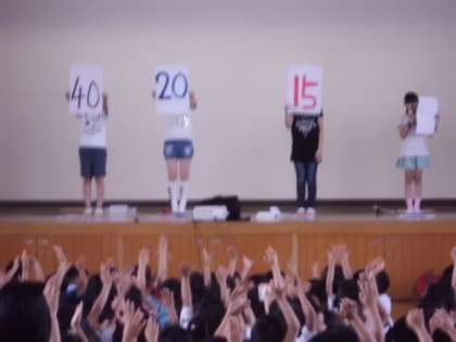 6月の保健目標「歯を大切にしよう」をもとに,6月の朝会時に歯のクイズを行いました。今回は,クイズをするだけでなく,クイズの答えもしっかり説明できて,みんなに聞いてもらえるよう,保健委員が工夫しました。