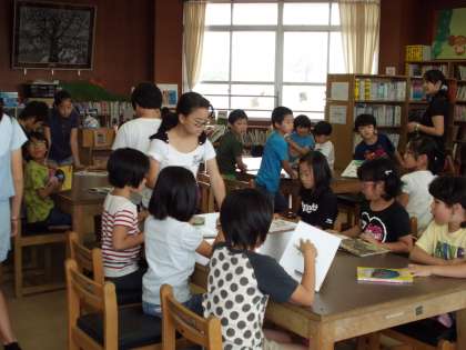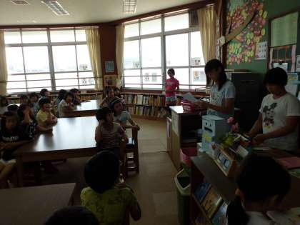 朝の帯学習の時間をすべて「読書の時間」にして,読書の時間を確保するようにしました。図書室では,図書委員会の子どもたちが,読書の関心を高めるゲームをしました。写真は,3年生の「本さがしゲーム」です。