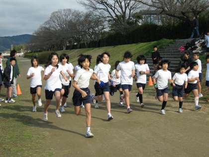 女子は6年生で(写真右端)同じく1500mを5分42秒で走りました。