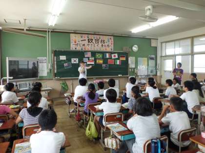 今日の学習は,”Let's go to Italy ! ”国旗を見て国名を答えました。ギリシャやエジプト,ニュージーランドなど,少し答えるのが難しいかなと思うような国旗でも,子どもたちが口々に答えていました。ただ,ギリシャやイタリアなどは,発音が少し難しそうでした。そして,国旗当てゲームでは,国旗の色や形などのヒントをもとに,どの国の国旗かを考えました。子どもたちは,ヒントにしっかりと耳を傾けながら答えていました。