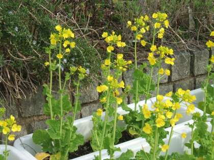 正門を入ったところの菜の花が黄色い花を咲かせています。校長室の窓の下にある石碑の前には,ヒヤシンスの花がツボミを膨らませています。