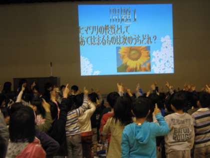 園芸クイズは,ヒマワリやチューリップなど身近な花についての簡単な問題を出題して,みんなが関心をもつように工夫してくれました。