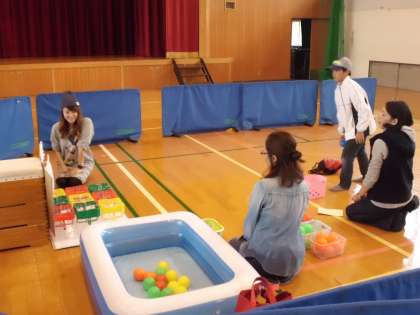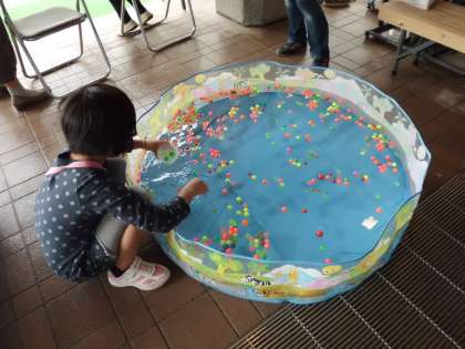 まだまだいろいろなお店がありました。1枚目の写真は「ペットボトルビンゴ」カラフルなカップめがけてボールを放ります。「ビンゴ!!」となるように縦横斜めを考えて放っていました。2枚目の写真は「スーパーボールすくい」大きなスーパーボールをすくった子どもが嬉しそうに見せてくれました。3枚目の写真は「かみコップカレンダー」ずっと使える仕組みを知ると「すごい!!」と熱心に作り始めていました。