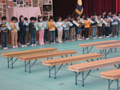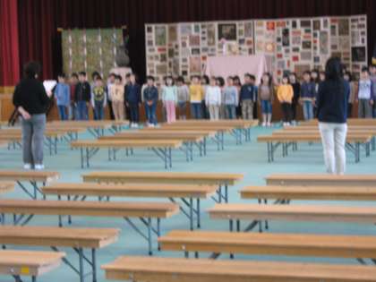 4月5日,入学式の準備を行いました。2年生に進級した子どもたちが,入学式の練習のために集まりました。6年生が,式場準備を終えた後,本番のリハーサルを行いました。春休みの間に,言葉や音楽を忘れてしまっていないか心配でしたが,みんなしっかり覚えていました。