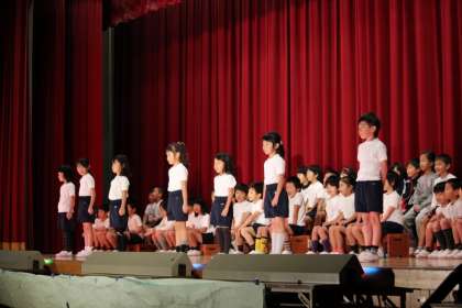 1年生にとっては初めての学習発表会。入学してから一生懸命頑張ってきたことをいろいろ発表してくれました。たし算,ひき算,ひらがなや漢字を学習しました。かけっこが速くなりました。鍵盤ハーモニカも吹けるようになりました。舞台の上の1年生の表情から,できる喜びが伝わってきました。
