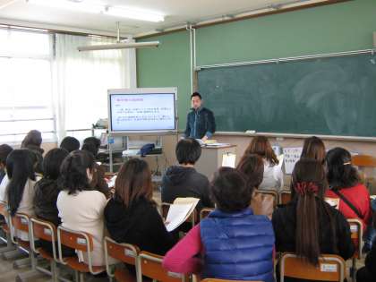 保護者説明会では,日程や持ち物についての説明を行いました。ここでも,大型テレビが活躍しました。