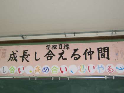 5年生の教室に,みんなで考えた学級目標が掲示してあります。